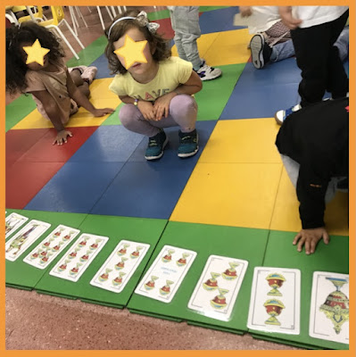 O repartidas las cartas de una baraja vamos ordenándolas también fijándonos en el número y en la cantidad. Aunque en esta actividad tuvieron que tener en cuenta otro elemento, pues las había de cuatro dibujos (palos) distintos.